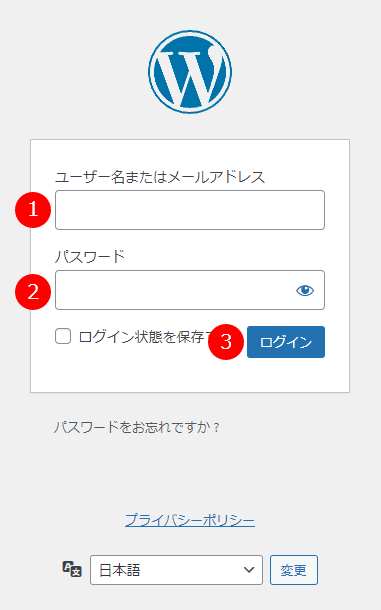 管理画面へのログイン
