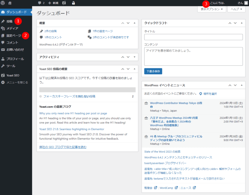 ②固定ページ(サブページ)の更新・追加・削除を管理するページです。