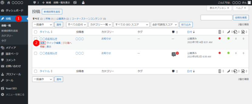 投稿(お知らせ・ブログ)の編集