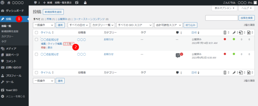 投稿(お知らせ・ブログ)の削除