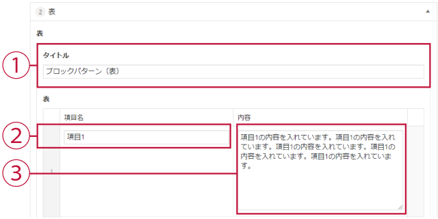 2列の表が作成かのうなブロックです。行数の制限はありません。