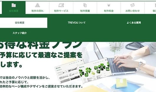 ホームページ制作TREVOのホームページ上部メニューをプチリニューアル